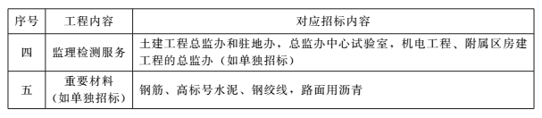 說明:1.以上招標內容依據(jù)公路建設項目招標審批(核準)意見范圍內容進行劃分。