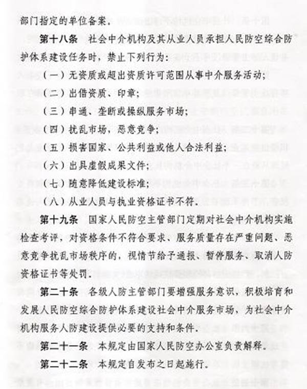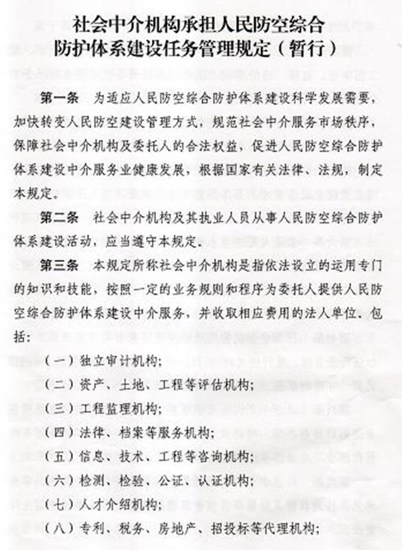 社會中介機(jī)構(gòu)承擔(dān)人民防空綜合防護(hù)體系建設(shè)任務(wù)管理規(guī)定(暫行)
