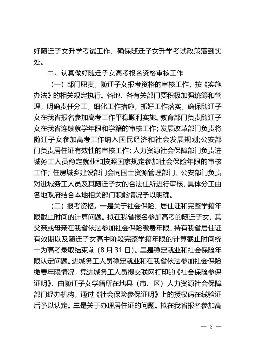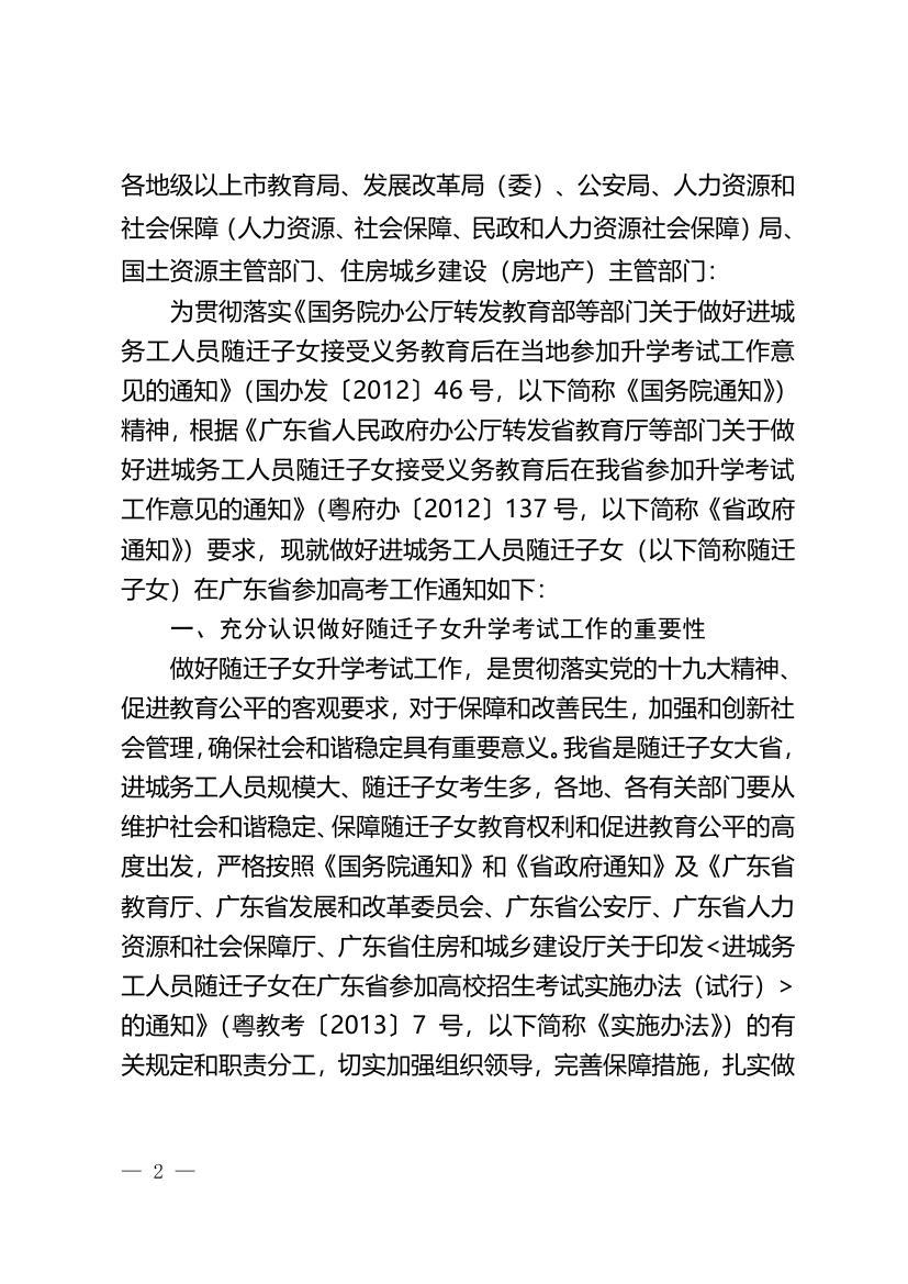關(guān)于進(jìn)城務(wù)工人員隨遷子女在廣東省參加高考有關(guān)工作的通知