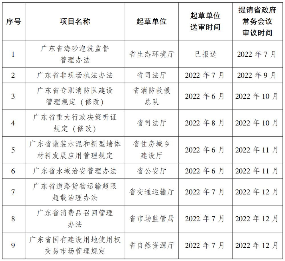 《廣東省人民政府2022年度制定規(guī)章計劃》執(zhí)行中遇到的問題,請徑向省司法廳反映。